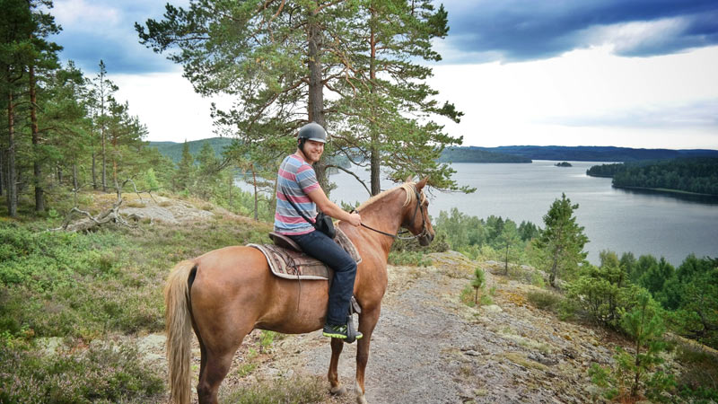 Je mag vrij rijden in de natuur aangezien paardrijden is opgenomen in het Allemansrätten. U moet uw pad echter zorgvuldig kiezen en zachte grond vermijden om schade te voorkomen.