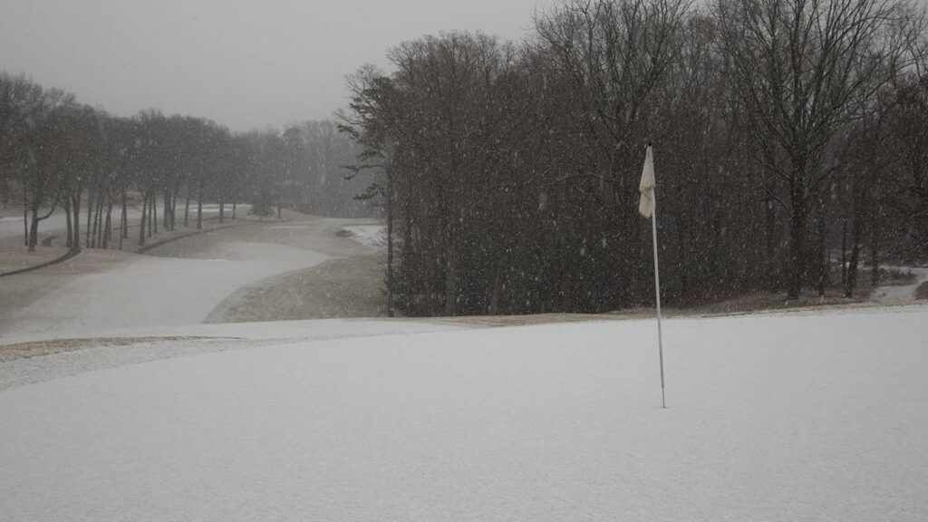 Golfbanen kunnen tijdens de wintermaanden ook beschadigd raken door skiën en wandelen. Respecteer dus eventuele hekken of barrières. Zolang u echter buiten de greens en tees blijft (de tees zijn de gebieden waar spelers hun eerste slag doen), is het over het algemeen toegestaan op een golfbaan als er niet wordt gespeeld.